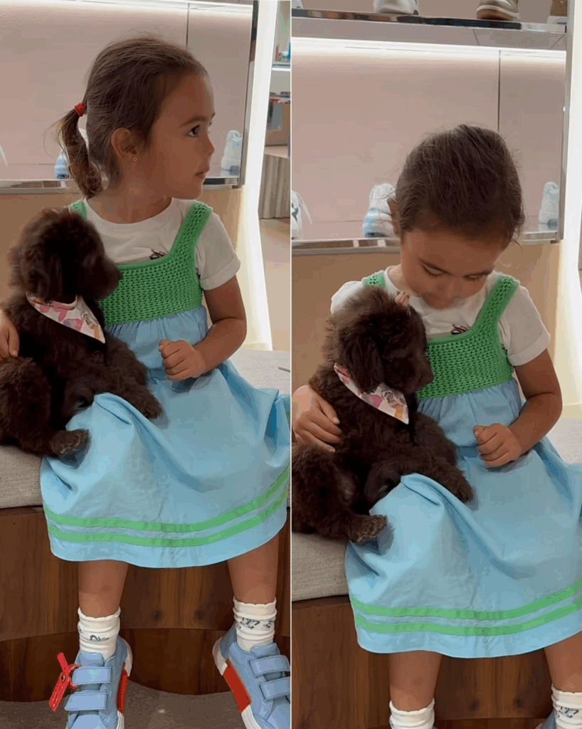 La pequeña aparece radiante junto a su mejor amigo peludo, y en esa imagen se despliega un instante de ternura auténtica que detiene el tiempo. Sus risas, compartidas entre humanos y huellas, hablan del cariño sin palabras y del vínculo que trasciende lo cotidiano.